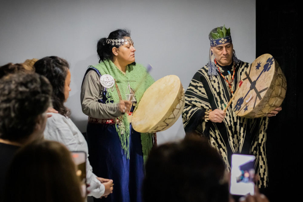 En consonancia con el eje temático de la BIENAL, Del encantamiento y el horror, volver la mirada hacia expresiones estético-poéticas de pueblos originarios, constituye una opción por revitalizar saberes y magias ancestrales. Para esto, decidimos invitar directamente al lonko Oscar Farías como curador, en lugar de ensayar cualquier aproximación que pudiera resultar exotizante.
